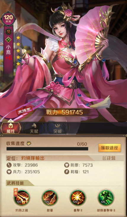 主公在次日登入遊戲即可領取120資質紅將-小喬,在神魔三國的世界中,小喬是灼燒隊的核心輸出,可以為主公上陣殺敵,亦可為主公獻舞養眼!
