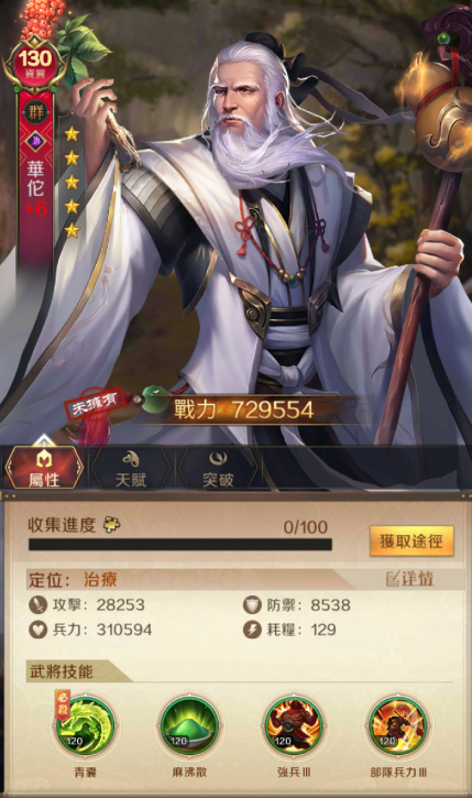 主公完成7日成長目標即可領取130資質紅將-華佗,治療武將中的佼佼者,百搭武將!