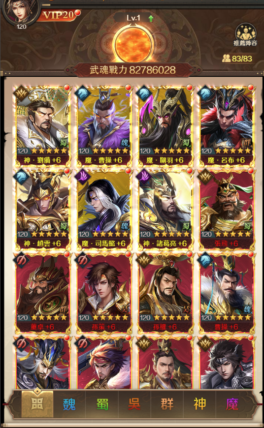 1)按陣營分類:魏、蜀、吳、群、神魔(特殊陣營)
